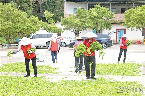 采茶時(shí)節(jié),在興寧市徑南鎮(zhèn)官亭村的晨露茶葉種植基地,幾十名茶農(nóng)熟練地采摘著春茶?!拔覀冊诠偻ご?、黃坑村等地建立了茶葉種植基地,引進(jìn)高香型茶葉新品種,采用無公害標(biāo)準(zhǔn)化種植,并采取‘公司+合作社+基地+農(nóng)戶’的模式,輻射帶動(dòng)本村及周邊區(qū)域茶農(nóng)?!睆V東晨露茶文化旅游產(chǎn)業(yè)園有限公司負(fù)責(zé)人張新秋告訴記者,該公司去年春茶干茶產(chǎn)量超過7萬斤,今年又有部分茶樹進(jìn)入豐產(chǎn)期,預(yù)計(jì)春茶干茶產(chǎn)量可超過10萬斤。