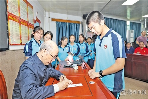 劉煥彬院士走進(jìn)興寧市坭陂中學(xué)。(高訊 攝)