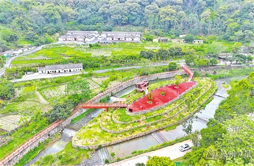 在湯坑鎮(zhèn)橫東村湖心島,一幅由眾多特色元素組成的鄉(xiāng)村田園新圖景徐徐展開。