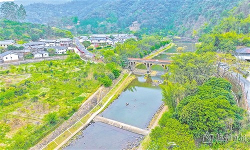 周溪河岸沿路及村民房前屋后,新種了梅花樹、桂花樹等樹種。(高訊 攝)