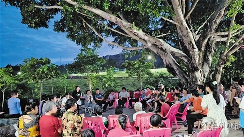 “鄉(xiāng)親們,晚上好!我是三河鎮(zhèn)黨委書記鐘麗惠,今晚把大家召集在一起,主要是想跟大家談?wù)勑?,希望大家多提意見和建議,共同推進(jìn)匯城村‘百千萬工程’典型村建設(shè)……”5月29日晚,在大埔縣三河鎮(zhèn)匯城村南門坪榕樹下,一場(chǎng)別開生面的“榕樹下議事”活動(dòng)在這里舉行。