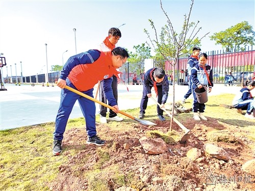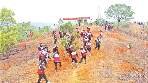 五華縣華東中學(xué)日前舉行新團(tuán)員入團(tuán)儀式暨“入團(tuán)種棵樹”主題團(tuán)日活動(dòng),60名學(xué)生在團(tuán)旗的見證下,共同種下60棵黃花風(fēng)鈴木,打造了擁有青春印記的“團(tuán)員青年林”;在水寨鎮(zhèn)榕樹村,老黨員張妙華帶頭出錢出力,助力該村開展“四旁”“五邊”見縫插綠行動(dòng)美化家園……今年以來,從少年兒童到老年人,五華干部群眾攜手植樹造林、綠化美化的火熱場(chǎng)景隨處可見。