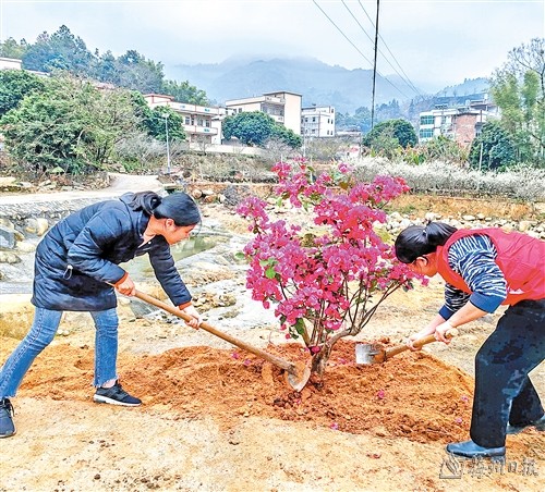 市民群眾種下觀賞花木,進(jìn)一步扮靚家園。(五華縣林業(yè)局供圖)