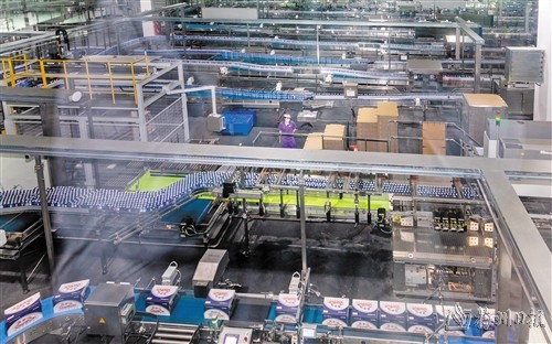 梅州五華景田百歲山礦泉水廠(chǎng)基地生產(chǎn)車(chē)間內(nèi),兩條礦泉水生產(chǎn)線(xiàn)正滿(mǎn)負(fù)荷生產(chǎn)。(連志城 攝)