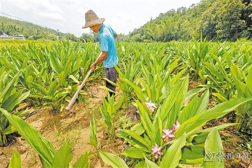 新圩鎮(zhèn)借外力挖潛力,建成100畝以上的連片農(nóng)業(yè)基地超30個(gè)。圖為茶星村南藥種植基地。(連志城 攝)