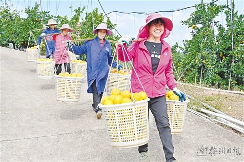 隨著平遠(yuǎn)縣第二十屆臍橙文化旅游系列活動(dòng)啟動(dòng),今年平遠(yuǎn)臍橙正式開采。(鐘小豐 攝 )