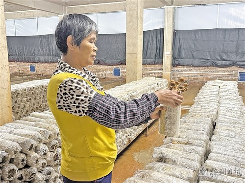在發(fā)展產(chǎn)業(yè)的同時,小密村強村公司通過聘請4名村民為長期員工,不斷壯大員工隊伍,讓村民有了更多就業(yè)機會?!霸诖謇锕ぷ鳎饶馨l(fā)揮自己的長處,還能顧家賺錢,我們很滿足?!毙∶艽宕迕?、強村公司員工陳蓮香在管理茶樹菇的同時,還負(fù)責(zé)養(yǎng)殖家禽、種菜等業(yè)務(wù)。