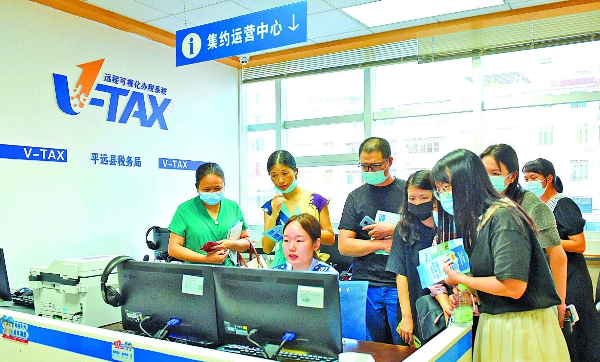 ▲涉稅專業(yè)服務(wù)機(jī)構(gòu)代表走進(jìn)辦稅大廳全流程跟辦V-tax業(yè)務(wù),現(xiàn)場感受“幕后”審核流程。(圖片來源:掌上梅州 陳玲瑜 攝)