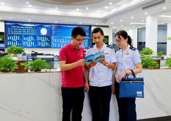 ▲稅務(wù)部門青年助企團(tuán)走進(jìn)“專精特新”企業(yè),宣傳新的組合式稅費(fèi)支持政策。(圖片來源:掌上梅州 李晶晶 攝)