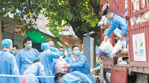 各類生活物資源源不斷運(yùn)送到畬江鎮(zhèn),保障群眾需求。(圖片來源:梅州日?qǐng)?bào) 林翔 攝)