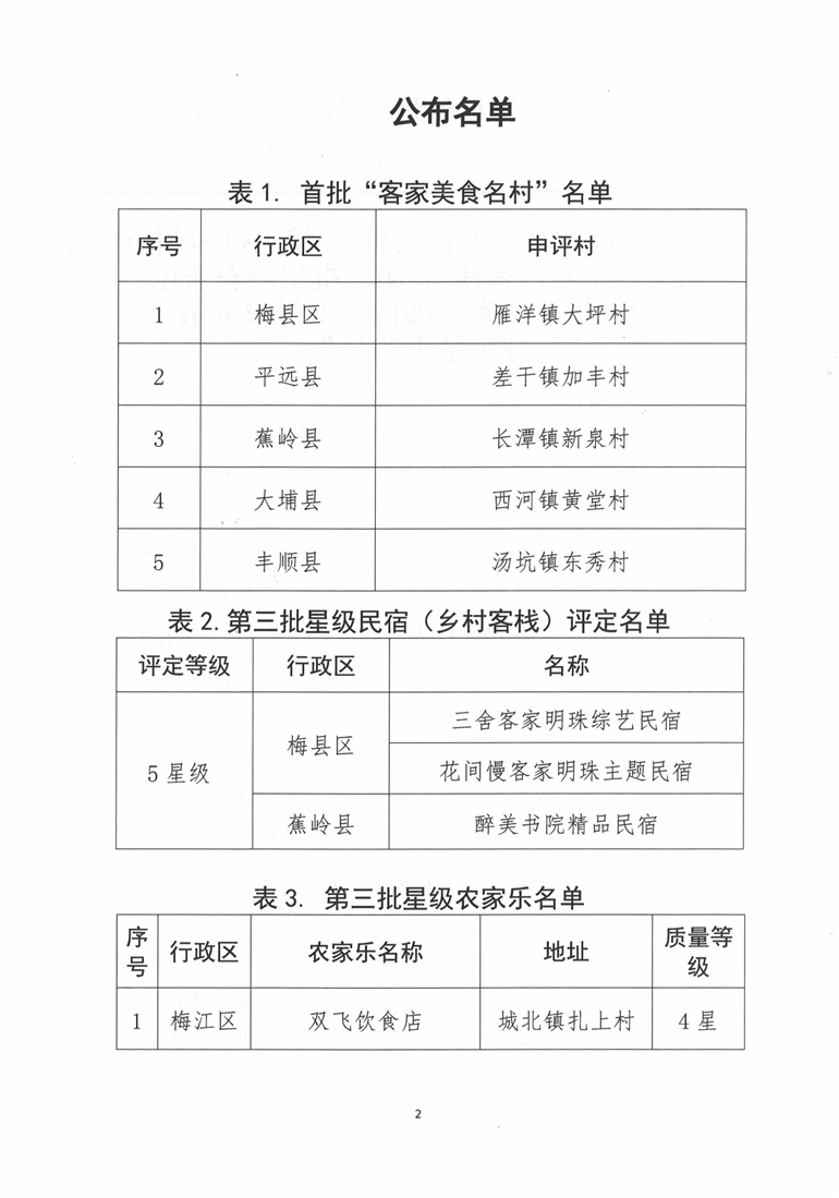 關(guān)于首批“客家美食名村”、第三批梅州市星級民宿(鄉(xiāng)村客棧)、第三批星級農(nóng)家樂、第二批“客家菜師傅”工程農(nóng)家樂評定結(jié)果的公告