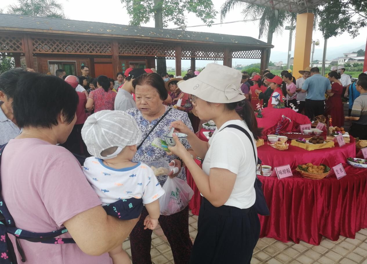 為深入推進蕉嶺縣“粵菜(客家菜)師傅”工程建設(shè),進一步提高我縣客家特色美食知名度,傳承和發(fā)揚客家飲食文化。9月22日上午,在慶祝2020年中國農(nóng)民豐收節(jié)系列活動中舉辦以“長壽蕉嶺,及第飄香”為主題的“粵菜(客家菜)師傅”工程體驗展區(qū)。通過講解客家飲食文化,展示、提供免費品嘗客家風味米制食品以及“三及第”等蕉嶺特色美食的方式,向來賓們展現(xiàn)客家飲食文化的獨特魅力,進一步強化宣傳,弘揚客家文化,唱響“客家美食”品牌,助推鄉(xiāng)村振興發(fā)展。