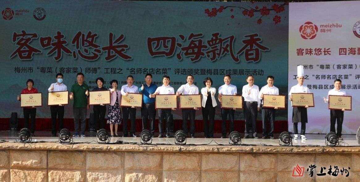 掌上梅州訊 11月21日上午9點(diǎn),梅州市“粵菜(客家菜)師傅”工程之“名師名店名菜”評(píng)選頒獎(jiǎng)暨梅縣區(qū)成果展示活動(dòng)在梅縣區(qū)人民廣場(chǎng)舉行,為“十大客家菜名師”“二十家客家菜名店”“三十道客家菜名菜”的獲獎(jiǎng)?wù)哳C獎(jiǎng)。副市長(zhǎng)張晨出席活動(dòng)。