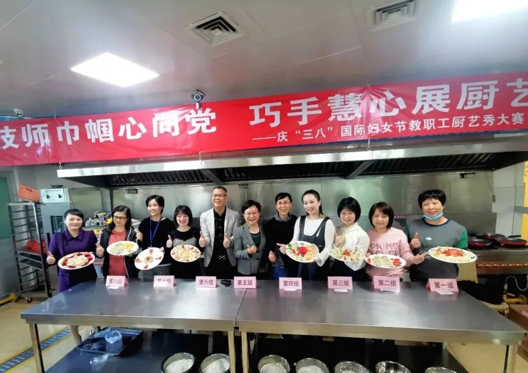 為迎接“三八”國(guó)際勞動(dòng)?jì)D女節(jié),充分展示我院女教職工的精神風(fēng)貌,3月7日下午,我院組織部分女教職工在烹飪實(shí)訓(xùn)基地開(kāi)展了“技師巾幗心向黨、巧手慧心展廚藝”廚藝秀活動(dòng)?;顒?dòng)邀請(qǐng)了廣東省五星級(jí)“粵菜師傅”名廚陳澤換大師親臨現(xiàn)場(chǎng)點(diǎn)評(píng)。