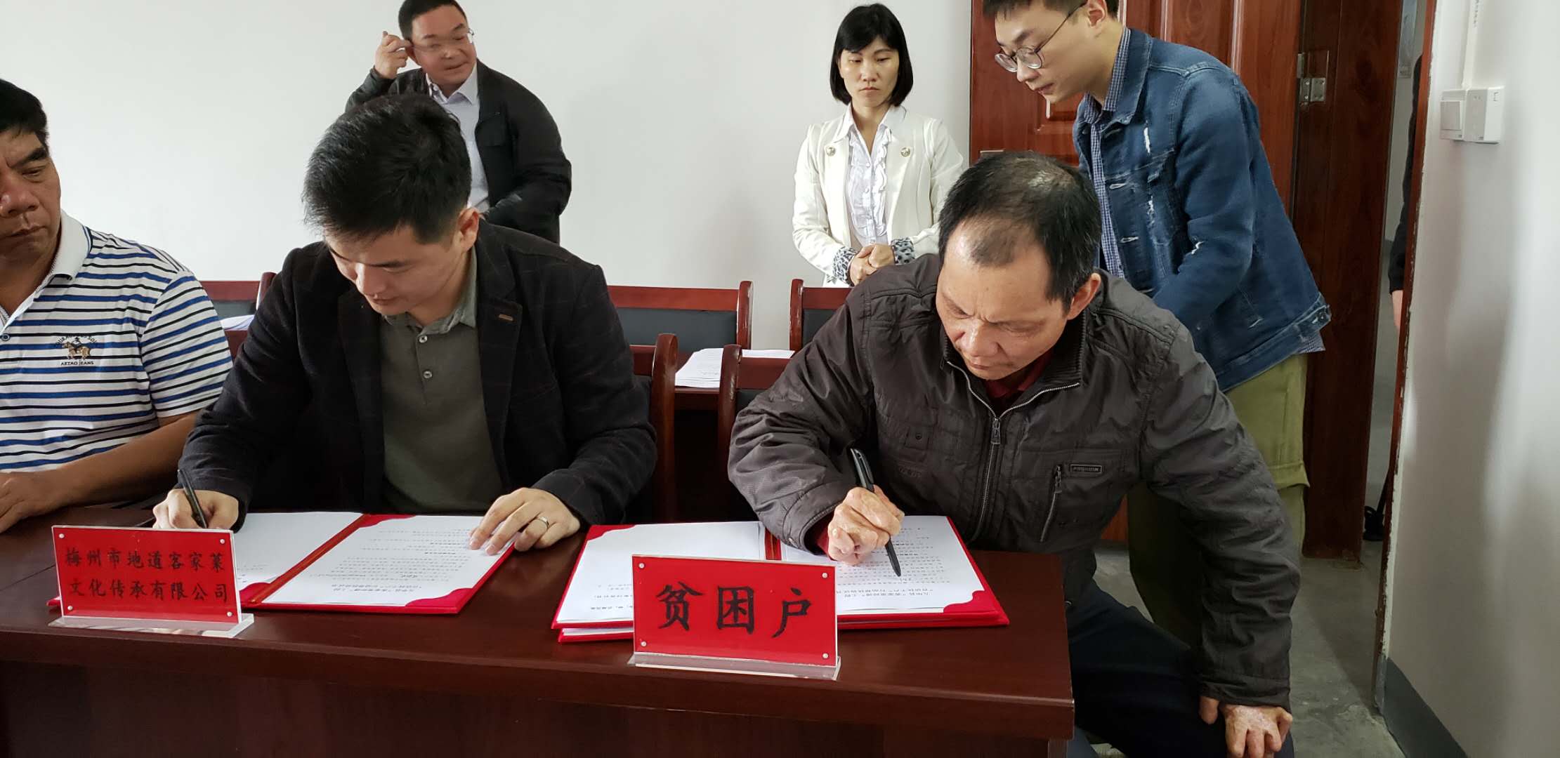5月7日上午“粵菜(客家菜)師傅”工程“百店扶千戶”示范點(diǎn)幫扶活動(dòng)簽約儀式,來(lái)自五華縣河?xùn)|鎮(zhèn)沙渴村29戶貧困戶與梅州市地道客家菜文化傳承有限公司簽訂了農(nóng)產(chǎn)品采購(gòu)幫扶、長(zhǎng)期工幫扶、臨時(shí)工幫扶、培訓(xùn)幫扶、推薦就業(yè)幫扶等幫扶協(xié)議。