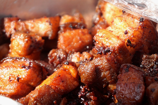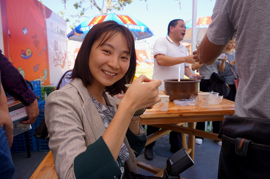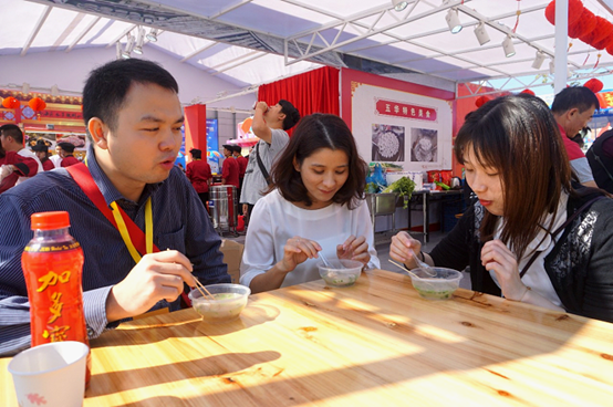 客家擂茶是客家人的待客之茶,客家的土豬肉卻是不少在外打拼的客家人念念不忘的家鄉(xiāng)味道。小禺兒在這里遇到一個(gè)在番禺工作的五華人陳先生和他的兩位老鄉(xiāng)在吃豬肉湯。他說他來番禺工作幾年了,很想念家鄉(xiāng)的味道,特別想念家鄉(xiāng)的豬肉湯。他說家鄉(xiāng)的豬肉與這里的豬肉不太一樣,這段時(shí)間豬肉很貴,他很少買豬肉吃,但家鄉(xiāng)的豬肉多貴都要吃。當(dāng)他知道五華客家美食第一次來廣州美食節(jié)參展時(shí),他特地和兩個(gè)老鄉(xiāng)過來捧場(chǎng),喝上一碗熱騰騰的家鄉(xiāng)豬肉湯。