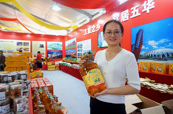 據(jù)五華電子商務(wù)協(xié)會(huì)辦公室主任江金麗介紹,番禺對(duì)口幫扶五華農(nóng)特產(chǎn)品展館匯聚了當(dāng)?shù)?5條幫扶村的特色農(nóng)產(chǎn)品共100多種,有高山紅薯、五指毛桃根、宮前菜油、客家娘酒、梅林菜脯、登云金雀茶葉、農(nóng)家菜干、琴江香米、南薯粉絲、沙田柚、客家新橋腐竹等。其中,農(nóng)家菜干、農(nóng)家黑豆、農(nóng)家黃豆和宮前菜油是電子商務(wù)協(xié)會(huì)從貧困戶手中收集、加工包裝好帶到這里銷售的,綠色天然。小禺兒在現(xiàn)場(chǎng)看到,質(zhì)優(yōu)價(jià)美的特色農(nóng)產(chǎn)品吸引了不少市民選購。