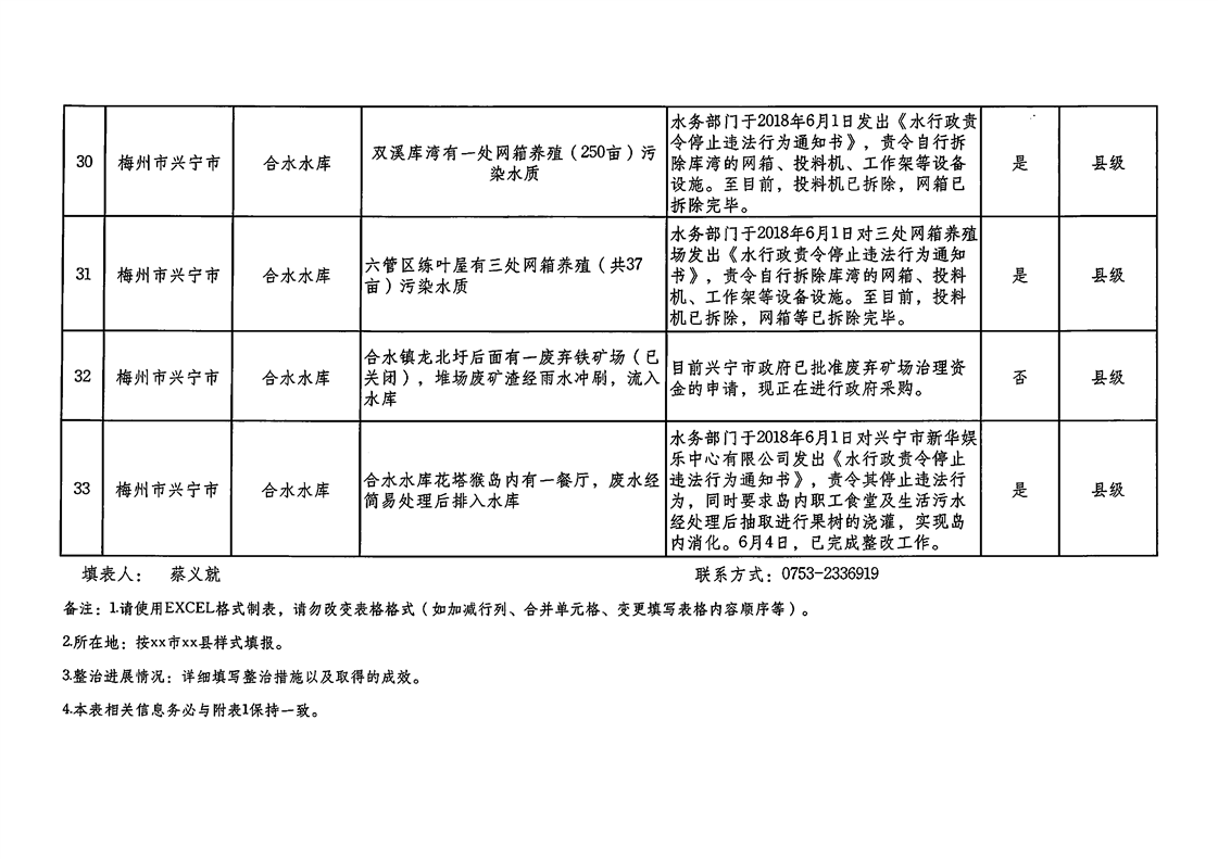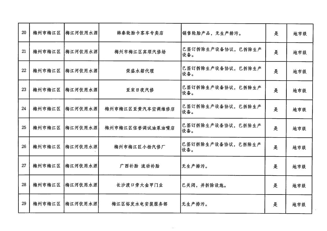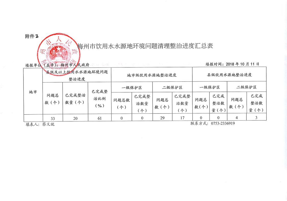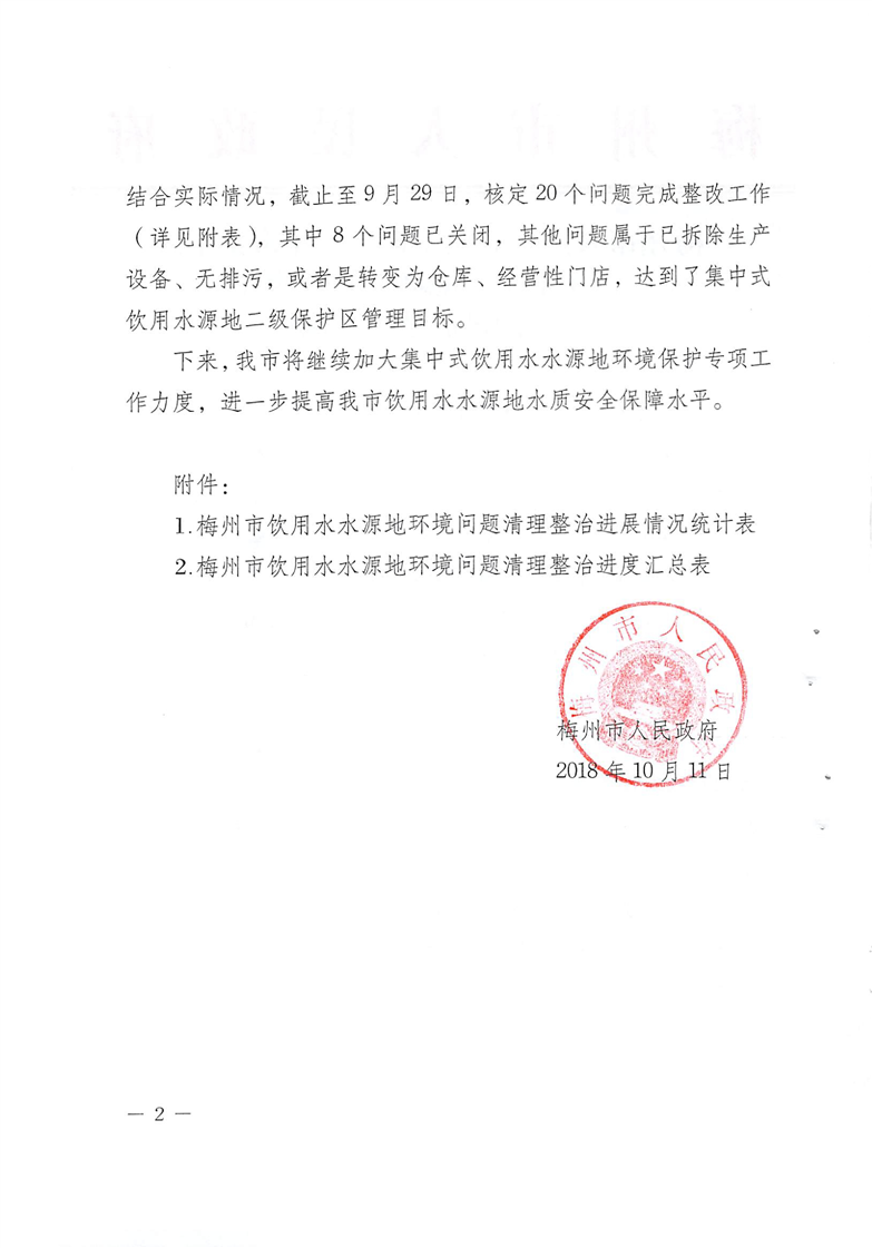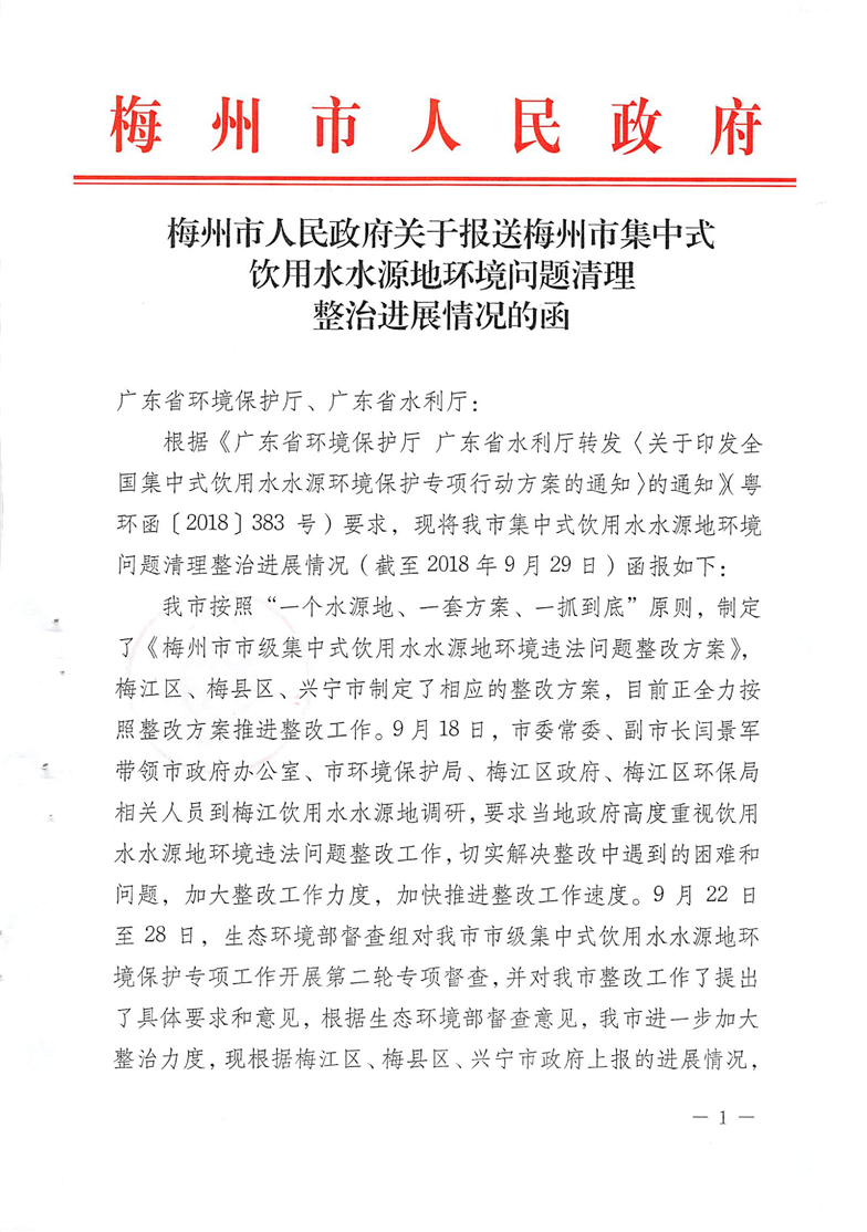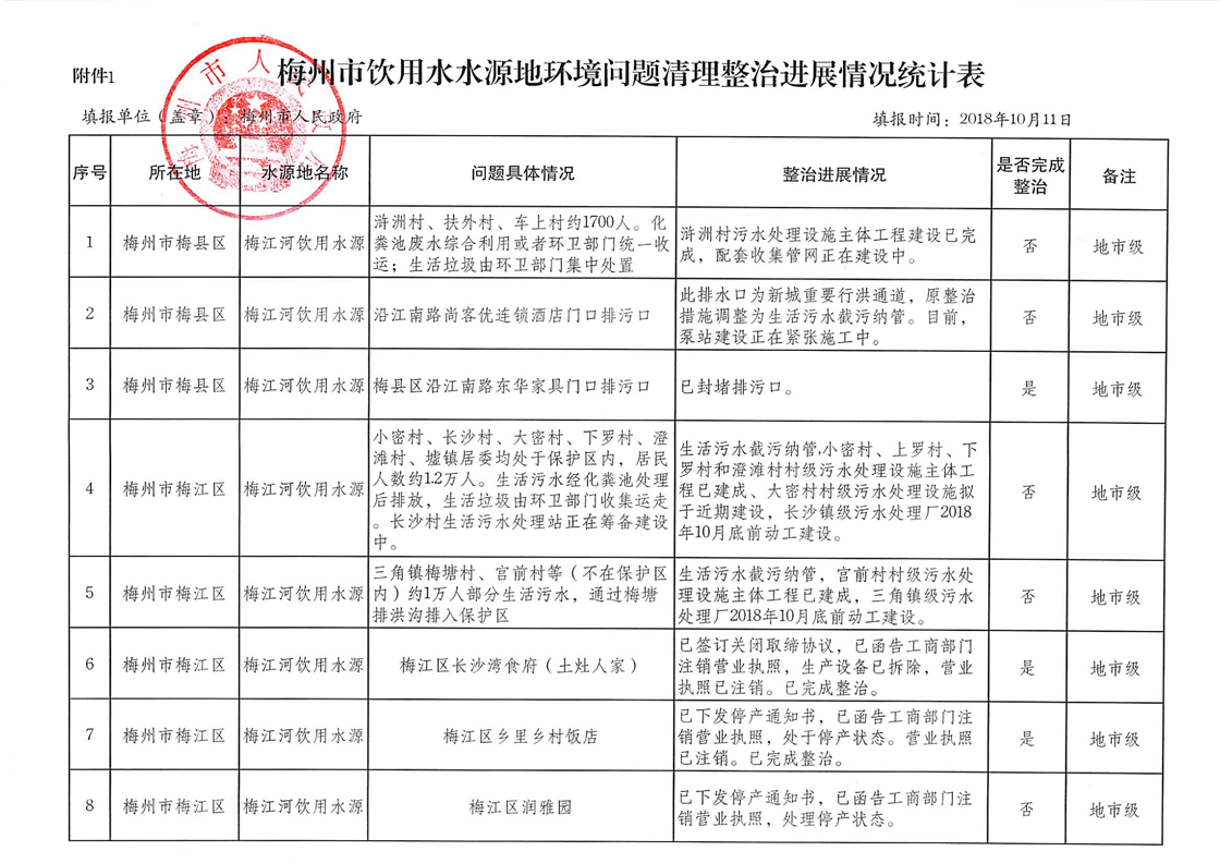 梅州市集中式飲用水水源地環(huán)境問題清理整治進(jìn)展情況